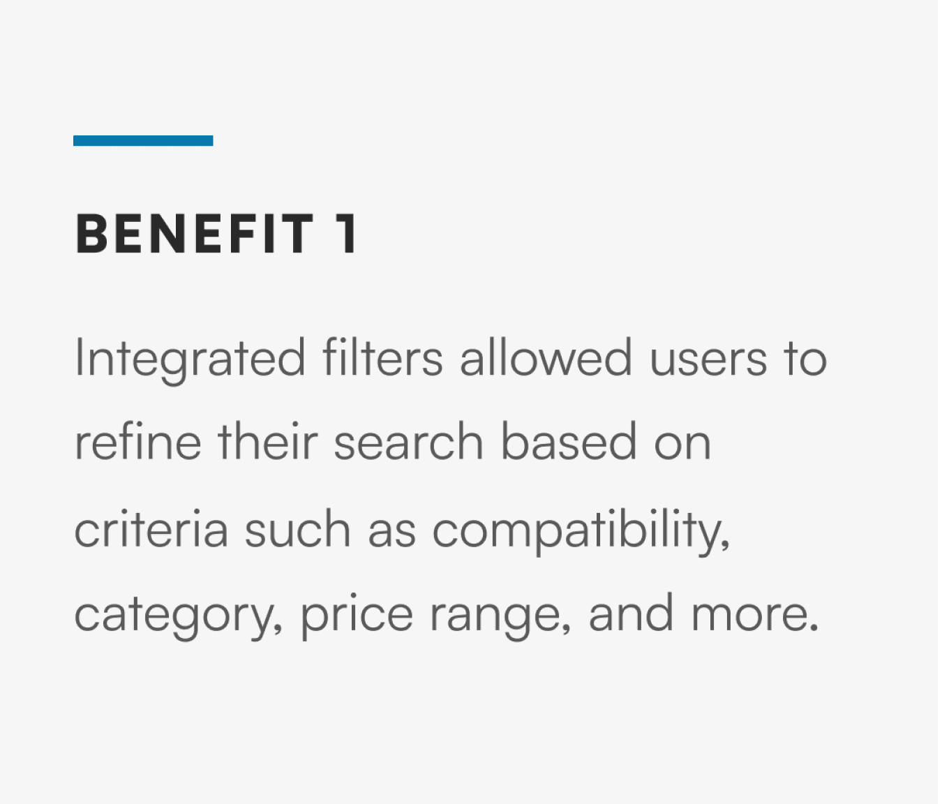 Integrated filters allowed users to refine their search based on criteria such as compatibility, category, price range, and more.