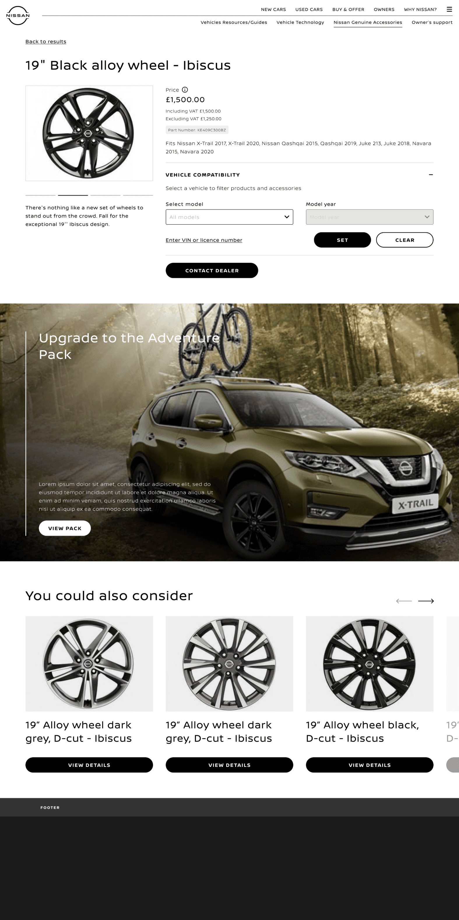 The landing design caters for customers who care about finding the best fit and expect higher quality from Nissan.