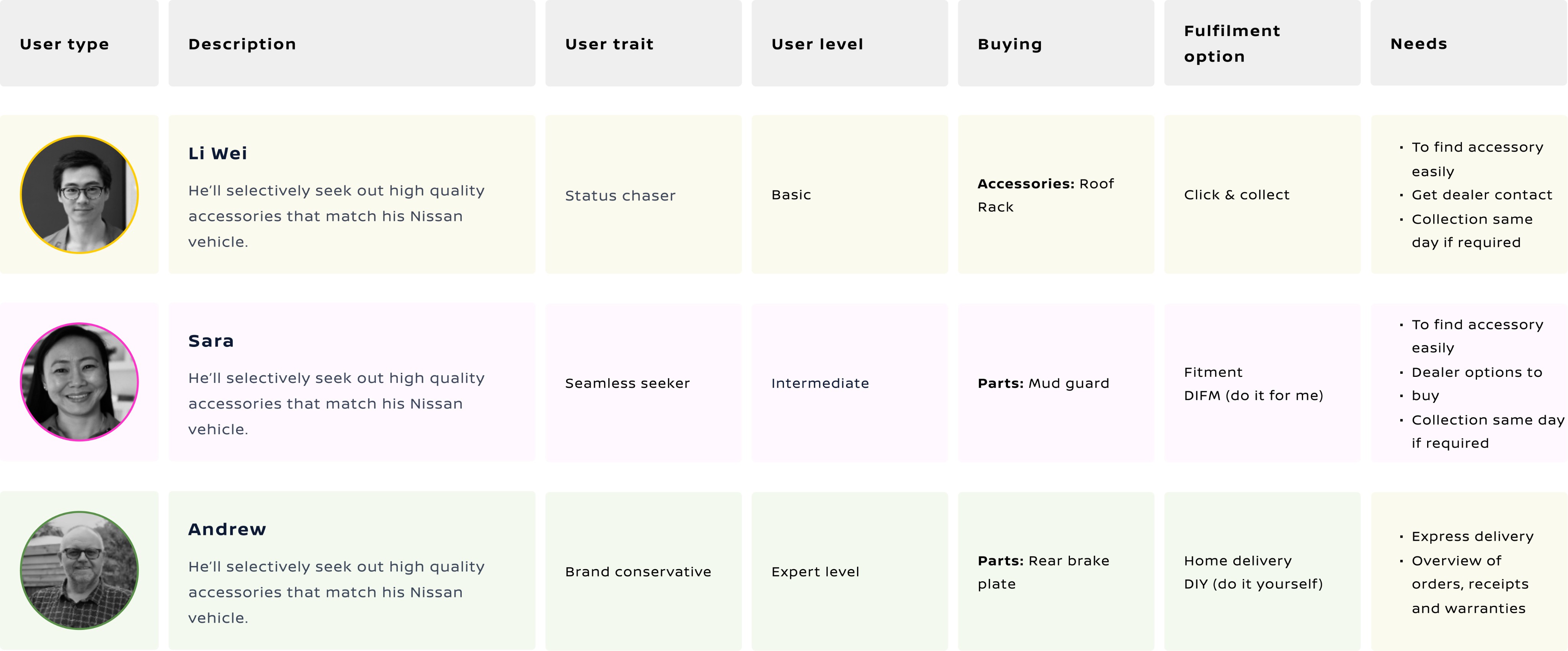 We meticulously aligned our design process with the meticulously crafted NCX (Nissan Customer Experience) user personas, ensuring our solutions were attuned to the unique expectations of our parts and accessories customers.