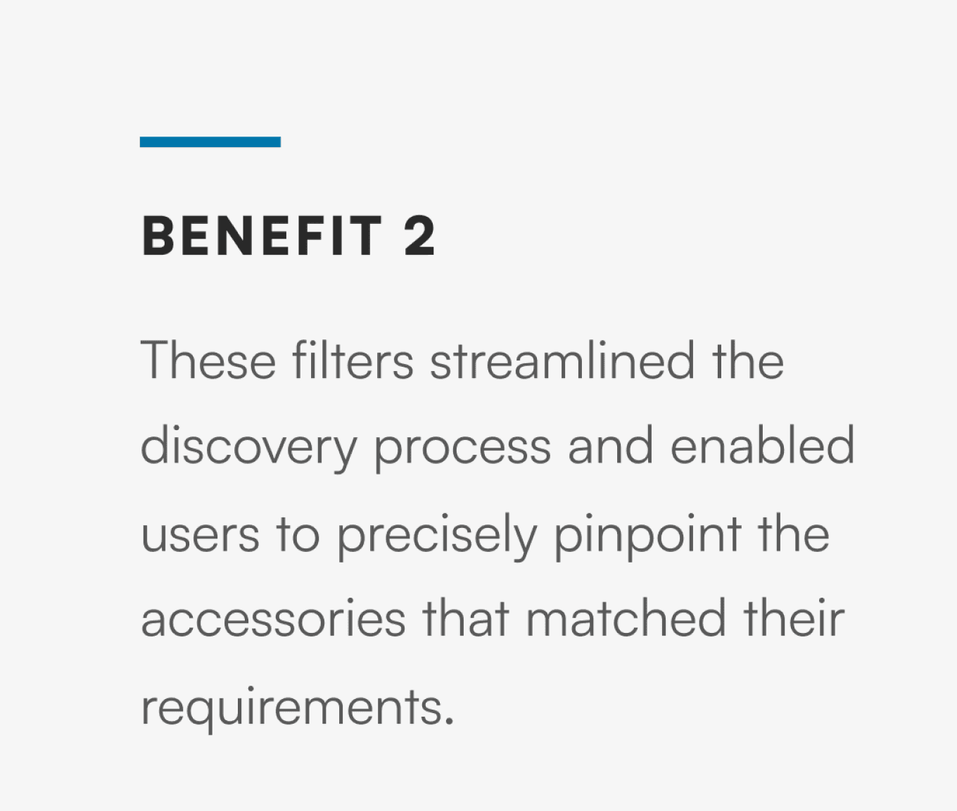 We introduced an array of user-centric features, including integrated filters, ensuring customers could effortlessly find accessories